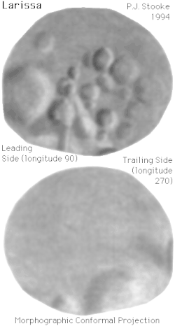 - ↑ P. J. Stooke. The Surfaces of Larissa and Proteus (англ.) // EARTH, MOON AND PLANETS. — 1994. — Vol. 65. — P. 31—54.