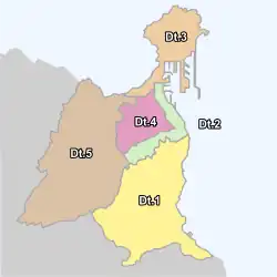Dt2 — Центр (88.546 чел.): Барриос Алькараванерас, Каналехас, Касабланка III, Сьюдад дель Мар, Сьюдад Харден, Финкас Унидас, Ла Патерна, Ломо Аполинарио, Лос-Тарахальес, Луго, Миллер, Миллер Индастриал, Сан-Франсиско — Сан Николас, Триана.