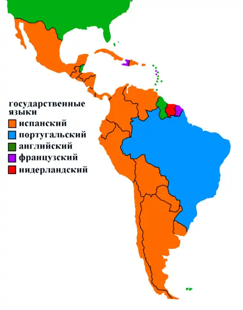 Менее распространены в качестве государственных английский, французский и нидерландский языки. В отличие от США и Канады, в Латинской Америке более высокий процент коренного населения. В Боливии и Парагвае индейцы составляют большинство.