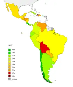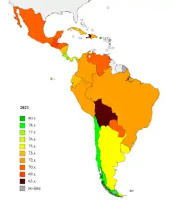 Ожидаемая при рождении продолжительность жизни в 2023 году, согласно оценке Группы Всемирного банка[14][15][16]: