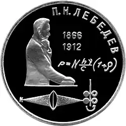 В 1991 году была выпущена памятная монета СССР, посвящённая Петру Николаевичу Лебедеву.[28]