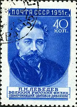 Пётр Никола́евич Ле́бедев (24 февраля [8 марта] 1866, Москва, Российская империя — 1 [14] марта 1912, там же) — русский физик-экспериментатор, первым подтвердивший на опыте вывод Максвелла о наличии светового давления и первым разработавший основы резонансного воздействия полей на резонаторы независимо от их природы[1]. Создатель первой в России научной физической школы, ординарный профессор Императорского Московского университета (1900—1911). Покинул Московский университет в связи с «делом Кассо».