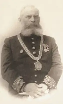 В 1894 году стал начальником вольного пожарного общества, помогавшего городской пожарной дружине. За время его работы была улучшена работа пожарного обоза, создана пожарная сигнализация. Город по достоинству оценил его заслуги на «огнеборческом поприще», наградив серебряной медалью на ленте ордена святой Анны и почетной пожарной каской.