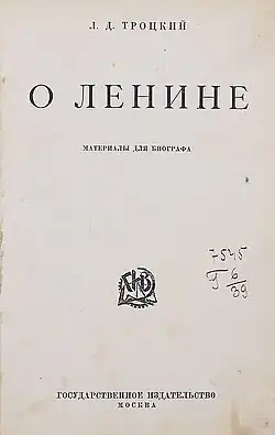 • Троцкий Л. Д. Национальное в Ленине // О Ленине. Материалы для биографа. М.: Госуд. Изд., 1924. — 168 с. 30 000 экз.
