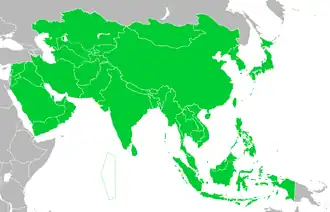 Согласно членству в ОСА, в Азиаде участвуют все расположенные в Азии общепризнанные страны, кроме имеющих бо́льшие азиатские части России, Турции, расположенных в Азии почти полностью Азербайджана, Грузии, расположенных в Азии полностью Армении, Кипра, Израиля и имеющего меньшую азиатскую часть Египта. Членами ОСА также являются частично-признанные Тайвань, Палестина и китайские территории с особым статусом Гонконг, Макао. Тайвань участвует как «Китайский Тайбэй».