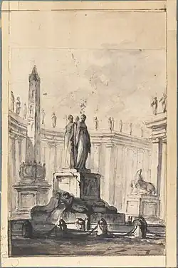 Архитектурная фантазия с вазой, гермой и колоннадой. Ок. 1745. Бумага, итальянский карандаш, тушь, кисть. Смитсоновский музей дизайна Купер Хьюитт, Нью-Йорк