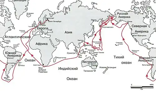 Плавание продолжалось с 26 августа 1817 по 5 сентября 1819 года. Шлюп «Камчатка» пересёк Атлантику, обогнул мыс Горн, далее через весь Тихий океан добрался до Камчатки, побывал во всех русских владениях Северной Америки, на Гавайских, Марианских и Молуккских островах, пересёк Индийский океан и, обогнув мыс Доброй Надежды, вернулся в Кронштадт.