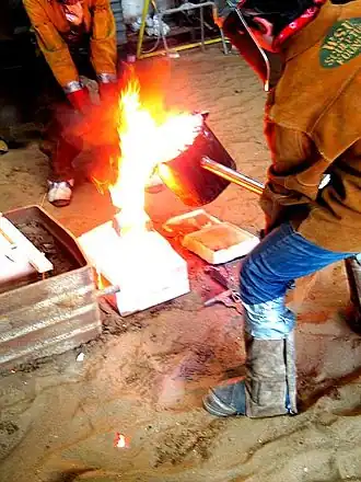 По ГОСТ 3.1109-82: изготовление заготовки или изделия из жидкого материала заполнением им полости заданных форм и размеров с последующим затвердением. В наиболее распространённом понимании — типовой процесс-операция получения изделий, заключающийся в заполнении специальной ёмкости (формы), формирующей поверхность или часть поверхности изготавливаемого изделия, жидким материалом (металлы и неметаллы) с дальнейшим термо-временным переходом жидкого материала в твёрдое агрегатное состояние и получения, в результате, твёрдой заготовки, близкой по конфигурации, размерам и свойствам к изделию. Литьём называют также продукцию литейного производства, художественные изделия и изделия народных промыслов, полученные с помощью литья. Сущность процессов литья металлов и задача литейного производства[2]. Литьём (или литейным производством) называют метод производства, при котором изготовляют фасонные заготовки деталей путём заливки расплавленного металла в заранее приготовленную литейную форму, полость которой имеет конфигурацию заготовки детали. После затвердевания и охлаждения металла в форме получают отливку-заготовку детали. Основной задачей литейного производства является изготовление литейных сплавов отливок, имеющих разнообразную конфигурацию с максимальным приближением их формы и размеров к форме и размерам детали (при литье невозможно получить отливку, форма и размеры которой соответствует форме и размерам детали) . Мастер литейного дела, отливщик — Лите́йщик или Лите́ц[1], например «пушечный литец» Андрей Чохов, который, в 1586 году, создал Царь-пушку.