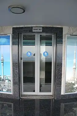 Для информации о том, что лифт, прибывший на посадочный этаж, не может быть использован для перевозки пассажиров, на посадочном этаже должен быть размещён индикатор «Вход запрещён». Индикатор включается при прибытии лифта на посадочный этаж[31].