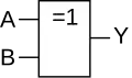 Словесное описание: «истина на выходе — при истине только на входе 1, либо при истине только на входе 2».