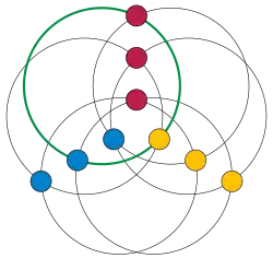 Локально линейные графы могут также быть построены из свободных от прогрессий множеств чисел. Пусть будет простым числом и пусть будет подмножеством чисел по модулю , таких, что никакие три члена не формируют арифметическую прогрессию по модулю . (То есть является множеством Салема — Спенсера по модулю .) Тогда существует трёхдольный граф, в котором каждая доля имеет вершин, имеет рёбер и каждое ребро принадлежит единственному треугольнику. Тогда, согласно этому построению, и число рёбер равно . Для построения этого графа, пронумеруем вершины на каждой стороне трёхдольного графа от до и строим треугольнике вида по модулю для каждого в интервале от до и каждого из . Граф, образованный объединением этих треугольников, имеет ожидаемое свойство, что любое ребро принадлежит единственному треугольнику. Если бы это было не так, существовал бы треугольник , где , и принадлежали бы , что нарушает предположение об отсутствии арифметических прогрессий в .[8] Например, с и , результатом будет Граф Пэли с девятью вершинами.