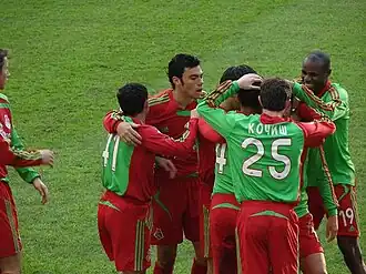 В 2007 году команда стала выступать в футболках салатово-красного цвета, красных трусах и гетрах. С 2008 года команда выступает в футболках красного цвета с салатовыми вставками, красных трусах и гетрах[150].