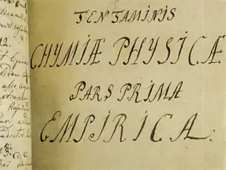 Весной 1739 года Ломоносов представил ещё одну работу «Физическая диссертация о различии смешанных тел, состоящих в сцеплении корпускул», в которой рассматривались вопросы о строении материи и намечались контуры новой корпускулярной физики и химии.