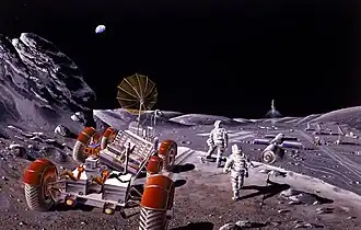 В ходе первой «лунной гонки» 1960-х годов (а также чуть ранее и позже) две космические сверхдержавы — США и СССР — имели планы сооружения лунных баз, которые не были реализованы[14][15].