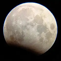 Во время затмения (даже полного) Луна не исчезает полностью, а становится тёмно-красной, из-за чего её называют Кровавой Луной. Это объясняется тем, что Луна даже в фазе полного затмения продолжает освещаться. Солнечные лучи, проходящие по касательной к земной поверхности, рассеиваются в атмосфере Земли и за счёт этого рассеяния частично достигают Луны. Поскольку земная атмосфера наиболее прозрачна для лучей красно-оранжевой части спектра, именно эти лучи в большей мере достигают поверхности Луны при затмении, что и объясняет окраску лунного диска. По сути, это тот же эффект, что и оранжево-красное свечение неба у горизонта (заря) перед восходом или сразу после заката. Для оценки яркости Луны во время затмения используется шкала Данжона.