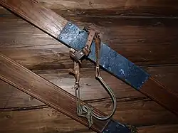 Конструкция крепления, где пятка удерживалась тросиком или ремнём, использовалась в креплениях до середины XX века. К XXI веку подпружиненный тросик сохранился в креплениях для телемарка.