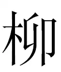 柳 — ива плакучая; созвездие «Ива». (кант. Lau4 , вьет. Liễu, кор. Ю). В Японии используется как женское имя — Янаги.