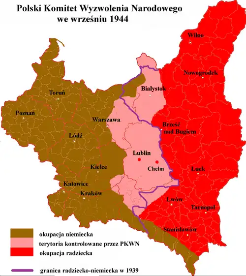 9 сентября 1944 года было подписано «Соглашение между Правительством Украинской Советской Социалистической Республики и Польским Комитетом Национального Освобождения об эвакуации украинского населения с территории Польши и польских граждан с территории УССР»[2]. Со стороны Польской республики соглашение подписал Эдвард Осубка-Моравский, председатель ПКНО, а со стороны УССР — Никита Хрущёв, председатель Совета Народных Комиссаров УССР[9][10][11][12][13][14][15][16][17].