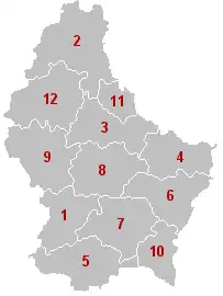 В административном отношении Люксембург делится на 12 кантонов, а кантоны — на 116 коммун.
