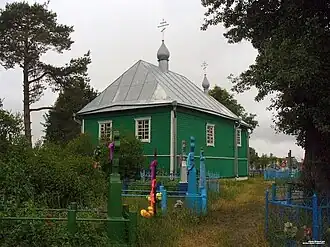 Историко-культурная ценность Республики Беларусь, . Построена из дерева в 1713 году как униатская, в середине XIX века была перестроена и передана православным. В тот же период возведена отдельно стоящая деревянная колокольня. Памятник народного зодчества[4]. - Православная часовня св. Николая (1835). Выполняет роль кладбищенской часовни, построена в середине XIX века[3].