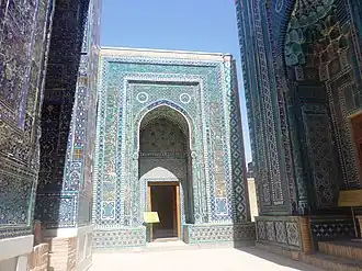 Главный портал мавзолея имеет характерную для памятников комплекса Шахи-Зинда XIV века П-образную форму. Внешние углы фланкируют трехчетвертные колонны, на центральной оси — входная портальная ниша, перекрытая стрельчатой аркой.