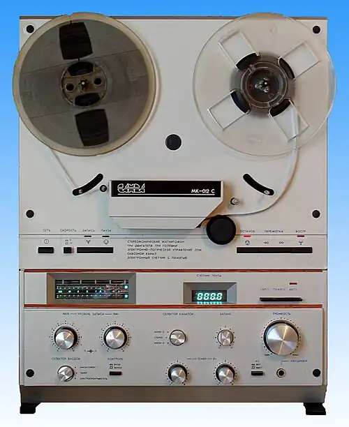 Магнитофон (от магнит и греч. φωνή звук) — электромеханическое устройство, предназначенное для записи звуковой информации на магнитные носители и/или её воспроизведения. В качестве носителя используются материалы с магнитными свойствами: магнитная лента, проволока, магнитные манжеты, диски, барабаны и т. д.