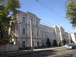 • здание 3-й мужской гимназии на углу ул. Успенской, № 1 и участка Старопортофранковской, позже переименованной в ул. Белинского (1874, соавтор В. Маас), ныне университет МВД;
