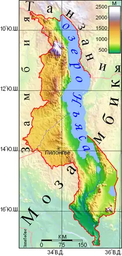 Мала́ви (англ. Malawi, ньянджа Malaŵi /məˈlɔːwi, məˈlɑːwi, ˈmæləwi/[4]), официальное название — Респу́блика Мала́ви (англ. Republic of Malawi; до 1964 года Нья́саленд, англ. Nyasaland) — государство в регионе Южная Африка (согласно иным классификациям, в регионе Восточная Африка или в Юго-Восточной Африке[5][6]). На юге и юго-востоке граничит с Мозамбиком (длина границы — 1498 км), на западе — с Замбией (847 км), на севере — с Танзанией (512 км)[7]. На востоке граница с Мозамбиком и Танзанией проходит по озеру Ньяса.