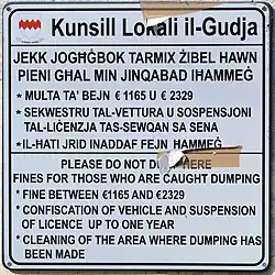 Двуязычная табличка на мальтийском и английском
