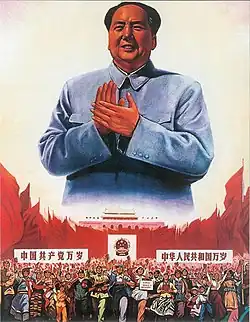 1 октября 1949 года Мао провозгласил создание Китайской Народной Республики, марксистско-ленинского однопартийного государства, контролировавшегося Коммунистической партией Китая. В последующие годы он укрепил свой контроль с помощью китайской земельной реформы против помещиков, кампании по подавлению контрреволюционеров, кампаний «три-анти» и «пять-анти», а также перемирия в Корейской войне, что в совокупности привело к гибели нескольких миллионов китайцев. С 1953 по 1958 год Мао сыграл важную роль в укреплении командной экономики в Китае, разработке первой Конституции Китайской Народной Республики, запуске программы индустриализации и инициировании военных проектов, таких как проект «Две бомбы, один спутник» и проект 523. В его внешней политике в этот период доминировал китайско-советский раскол, который вбил клин между Китаем и Советским Союзом. В 1955 году Мао начал движение Суфань, а в 1957 году он начал Антиправую кампанию, в ходе которой преследовалось не менее 550 000 человек, в основном интеллектуалы и диссиденты[6]. В 1958 году он начал «Большой скачок», целью которого было быстрое преобразование экономики Китая из аграрной в индустриальную, что привело к самому смертоносному голоду в истории и гибели 15-55 миллионов человек в период с 1958 по 1962 год. В 1963 году Мао начал движение за социалистическое образование, а в 1966 году — «Культурную революцию», программу по устранению «контрреволюционных» элементов в китайском обществе, которая продолжалась 10 лет и была отмечена жестокой классовой борьбой, повсеместным уничтожением культурных артефактов и беспрецедентным возвышением культа личности Мао. Десятки миллионов людей подверглись преследованиям во время Культурной революции, а количество погибших оценивается от сотен тысяч до миллионов. После многих лет плохого здоровья Мао перенес серию сердечных приступов в 1976 году и умер в возрасте 82 лет. В эпоху Мао население Китая выросло с 550 миллионов до более чем 900 миллионов человек, в то время как правительство не проводило строгой политики планирования семьи.