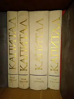 2-й (1885) и 3-й (1894) тома «Капитала» были изданы Энгельсом после смерти Маркса, который, готовя их к печати, писал: «Я работаю над неструктурированными рукописями второго, третьего тома „Капитала“, я почти ничего не понимаю, работаю с трудом»[63].