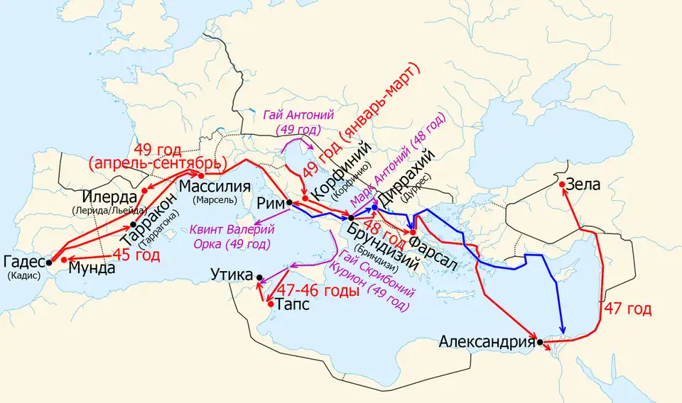 Победы Цезаря и взятые им города Победы Помпея Крупные города