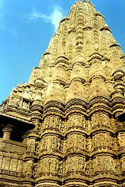 Математика фракталов использовалась для того, чтобы здания имели универсальную притягательность, поскольку они обеспечивали наблюдателю чувство масштаба с любого расстояния. Например, в высоких гопурамах индусских храмов, таких как Храм Вирупакши в Хампи, построенном в XVII веке, и храм Кандарья-Махадева в группе храмов Кхаджурахо, у которых части и целое имеют одинаковые характеристики с фрактальной размерностью в границах от 1,7 до 1,8. Группа меньших башен (шикхара) вокруг более высокой центральной башни, которая представляет святую гору Кайлас, обиталище божества Шива, изображаемого в виде бесконечного повторения вселенных индуистской космологии[2][7].