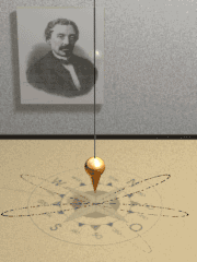 Маятник Фуко — это груз, подвешенный на нити, способный изменять плоскость своих колебаний.