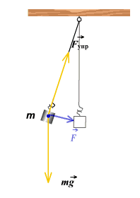 Колебания математического маятника с расстановкой сил (результирующий вектор в нижней точке равен нулю, но это не так, поскольку не учтена центробежная сила, натягивающая нить помимо mg. Таким образом, в нижней точке вектор силы должен быть направлен вверх, в центр вращения)
