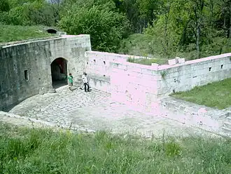 Форт имеет форму шестиугольника, высота стен доходит до 8 метров. Рядом с ними прорыт ров, служивший одновременно и препятствием и средством маскировки.