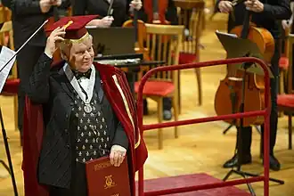 Традиция присвоения почетного звания существовала в Петербургской консерватории с 1878 года вплоть до революции 1917 года и была возрождена в 2000 году[13]. С тех пор церемония вручения атрибутов звания — диплома и мантии Почетного профессора — стала неотъемлемой частью Фестиваля. В рамках «Международной недели» были награждены: Юрий Темирканов (2003), Родион Щедрин (2005), Саулюс Сондецкис (2006), Кшиштоф Пендерецкий (2007), Валерий Гергиев (2012), Елена Образцова (2014), Давид Герингас (2016), Владимир Федосеев[14] (2018), Юрий Симонов[15] (2019), Ольга Бородина и Максим Венгеров[16] (2020), Давид Голощекин (2021), Николай Буров (2024). Звание Почетного профессора присуждается за выдающиеся заслуги в сфере музыкального искусства и подтверждает высокий статус награждаемого.