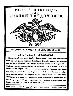 - ↑ Манифест о вступлении на Престол Императора Николая I, 12 декабря 1825 г. Дата обращения: 29 июля 2024. Архивировано 29 июля 2024 года.