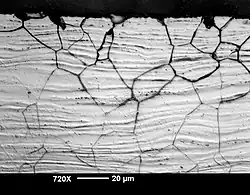 Межкристаллитная коррозия — (сокр. МКК[1] ) - вид коррозии, при котором разрушение металла происходит преимущественно вдоль границ зерен (кристаллов).
