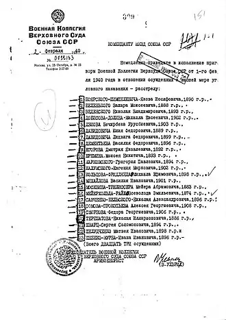 - ↑ Страница памяти на сайте жертв репрессий. Дата обращения: 3 октября 2023. Архивировано 18 октября 2023 года.