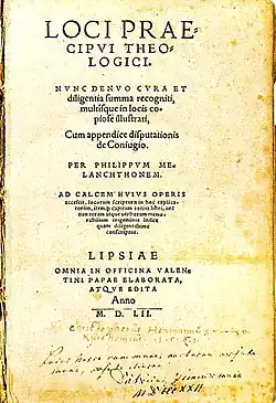 В 1521 году Меланхтон написал своё самое важное произведение — Loci communes. Оно представляет собой богословский учебник лютеранской церкви. Издания этого учебника можно разделить на три периода. Первый период — с 1521 по 1535 год. Эти издания содержат сформулированное и собранное в одном месте богословие Лютера. Они содержат в себе ограниченное краткое раскрытие основных вопросов антропологии и сотериологии. Это издание было основано на лекциях на послание к Римлянам и имеет больше практическую, чем богословскую цель. Второй период — с 1535 по 1544 год. Издание 1535 года, которое было посвящено английскому королю Генриху VIII, представляет собой тщательный пересмотр первоначальной версии труда. Третий период — с 1544 по 1559 год. Издания двух последних периодов содержат, помимо добавления материала и улучшения стиля, важные изменения в некоторых вопросах, таких как предопределение, свобода воли, телесное присутствие Христа в евхаристии и оправдание верой. Так, в них Меланхтон отказывается от детерминизма в пользу синергизма в вопросе спасения, от идеи телесного присутствия Христа в пользу присутствия духовного и от крайностей антиномизма в вопросе оправдания одной лишь верой. Последнее издание книги представляет собой труд, разделённый на 24 главы, в котором по порядку освещаются все традиционные темы христианства от сотворения до телесного воскресения. Заключительная глава посвящена христианской свободе. В этом издании Меланхтон использует схоластические методы доказательства, опираясь, кроме Писания, на труды отцов церкви[14].