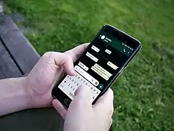 Программа, мобильное приложение или веб-сервис для мгновенного обмена сообщениями обычно называется «ме́ссенджер» (англ. messenger)[1][2]. Современные мессенджеры имеют возможность производить обмен текстом, фотографиями, видео, эмодзи, передачу файлов, голосовые вызовы и видеозвонки.