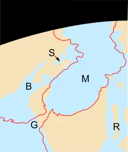 Наконец, в начале мессинского века закрылись Бетский (англ. Betic corridor) и Рифский проливы[комм. 2], соединявшие Тетис с Атлантикой (вместо нынешнего Гибралтарского пролива), и начался Мессинский кризис солёности.