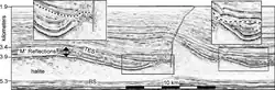 Поверх этой сейсмической структуры лежал сильный отражатель акустических (ультразвуковых) сигналов, часто называемый Reflector M[комм. 9], субпараллельный поверхности дна.