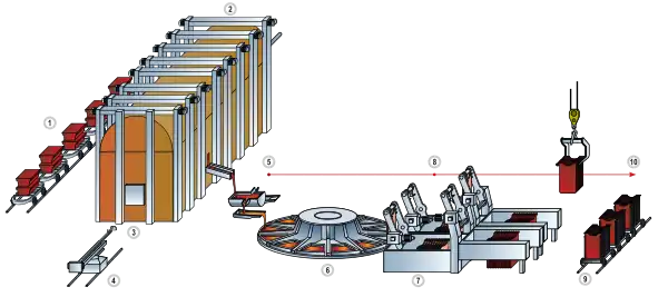 10 — транспортировка в цех электролиза