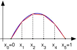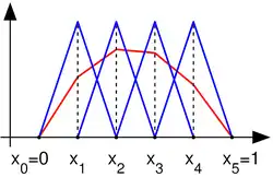 где кусочная область пространства . Есть много способов для выбора базиса . Выберем в качестве базисных функций такие , чтобы они представлялись прямыми линиями (полиномами первой степени):