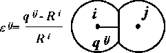 Параметр εij используется как мера деформации автомата i взаимодействующего с автоматом j. Где qij — расстояние от центра автомата i до точки его контакта с автоматом j; Ri=di/2 (di — размер автомата i).