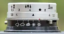 При этом расстояние до объекта съёмки может определяться на глаз или измеряться с помощью рулетки. Такой способ неудобен или обеспечивает низкую точность, но возможен при использовании сравнительно короткофокусной оптики с большой глубиной резкости[1]. В фотографии аппаратура такого типа чаще всего называется шкальный фотоаппарат[2].