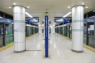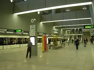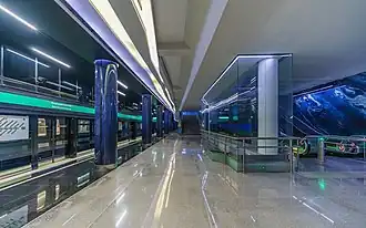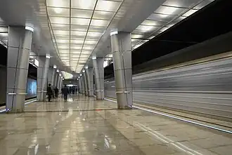 2. При этом по себе термин «станция глубокого заложения» означает не глубину станции как таковой, а, согласно строительным нормам и правилам (СНиПам), закрытый способ её строительства[10]: так, например, глубина станций «Охотный Ряд», «Библиотека имени Ленина» и «Кунцевская» Московского метрополитена, сооружённых закрытым и открытым способом, составляет 15, 12 и 37,6 м соответственно[11][12][13]