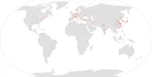 Советско-российская серия вагонов метрополитена 81-717/714 является мировым лидером по распространённости (эксплуатируется в метрополитенах 18[комм. 6] городов стран Варшавского договора, бывших республик СССР и Соцлагеря) и длительностью производства (с 1976 по 2021 годы)[37][38][39][40][41].